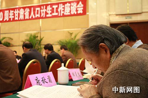 12月11日,一位退休的計生干部受邀參加“紀念改革開放30周年甘肅省人口計生工作座談會”。當日,甘肅省人口委主任蘇君表示,30年來,甘肅因實行計劃生育少生1062萬人,使人均GDP相對提高了2944元,人均壽命由65歲提高到71歲。甘肅等地在中國農村率先實施了獎勵扶助制度,變“處罰多生”為“獎勵少生”。2007年,該省人口出生率、自然增長率下降到13.14‰、6.49‰。攝影:殷春永