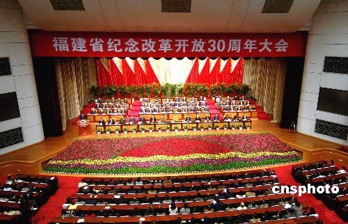 12月17日下午,福建省紀念改革開放30周年大會在福建會堂舉行。中共福建省委書記盧展工在福建省紀念改革開放30周年大會上作講話。中新社發 劉可耕 攝