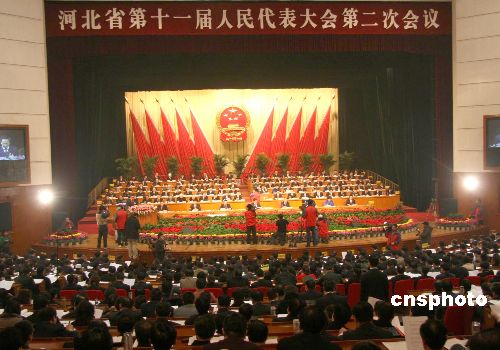 河北省第十一屆人民代表大會第二次會議1月8日在石家莊開幕,七百余名人大代表齊聚河北會堂,聽取和審議省政府工作報告。報告中提出該省今年經濟增長9%的目標。中新社發 田張夢 攝