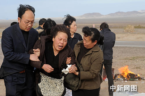 赴美旅游團車禍遇難者親屬在事故現場祭奠逝者