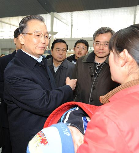 2月16日下午2時49分,溫家寶總理結束在天津的調查研究準備乘坐火車返回北京時,在天津火車站候車室遇到來自河北張家口2周歲的白血病患兒李瑞小朋友。當溫總理得知他因為家庭困難看不起病,母親準備帶他回老家時,當即囑咐隨行工作人員安排孩子到北京治病。記者于下午5時獲悉,小李瑞已經入住北京兒童醫院,國務院辦公廳工作人員還為他募集了捐款,并交到了孩子家長手中。 新華社記者 李學仁 攝