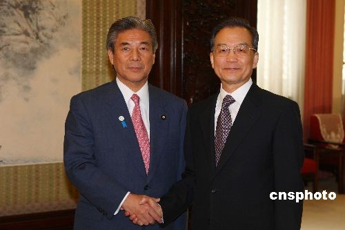 3月1日,中國國務院總理溫家寶在北京中南海紫光閣會見日本外相中曾根弘文。中新社發 盛佳鵬 攝