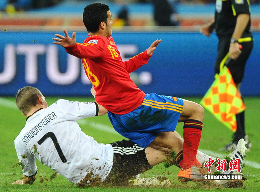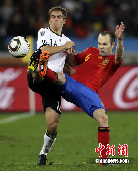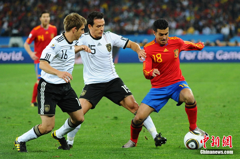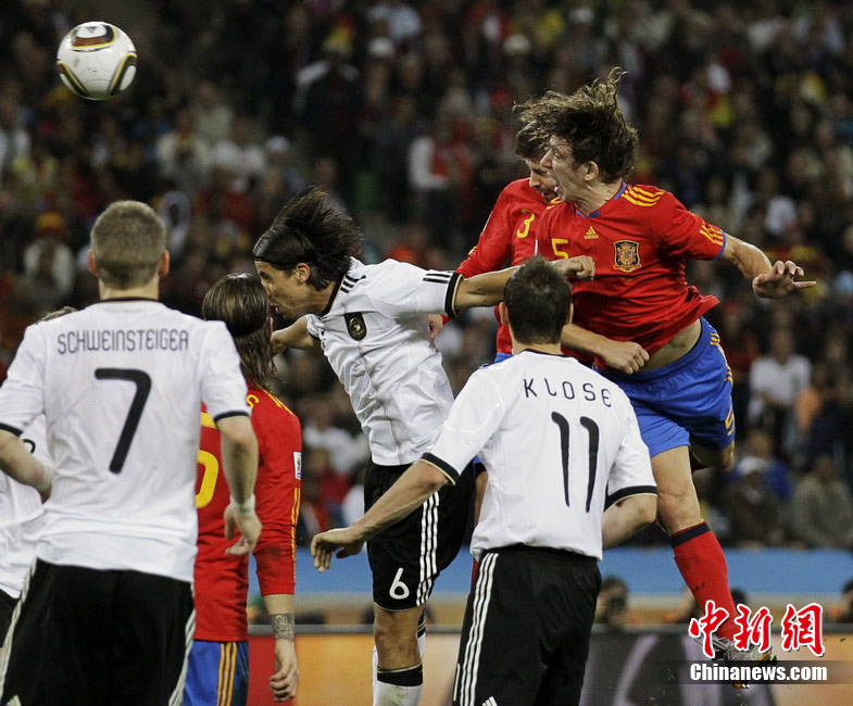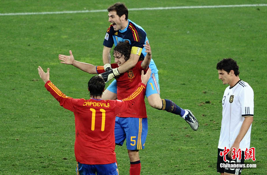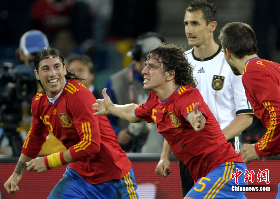 北京時(shí)間7月8日凌晨2:30,南非世界杯第二場半決賽在德班球場拉開戰(zhàn)幕,由德國隊(duì)迎戰(zhàn)西班牙。憑借普約爾在第73分鐘的頭球破門,西班牙隊(duì)1-0力克德國,與荷蘭隊(duì)會(huì)師決賽。