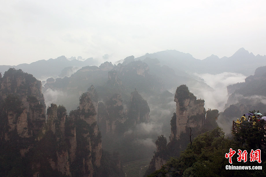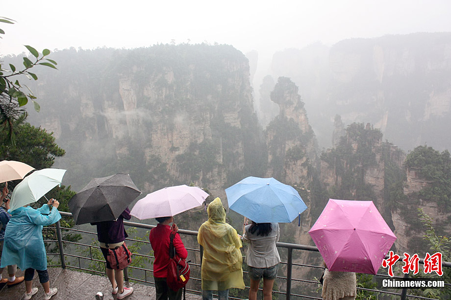 7月9日至12日連續(xù)不斷的大雨天氣,給在張家界觀光的中外游客帶來一些不便,但絲毫沒有影響游客的興致。雨中張家界形成的云海、瀑布風(fēng)景美輪美奐,蔚為壯觀,別具韻味,每天令上萬名游客陶醉其中。鄧道理 攝