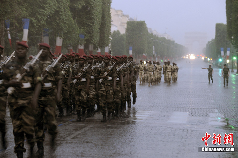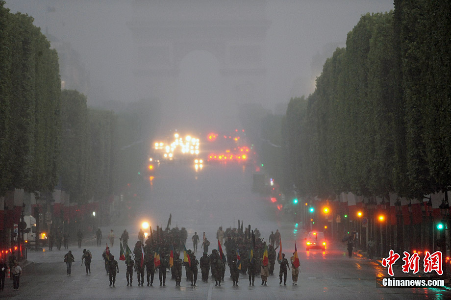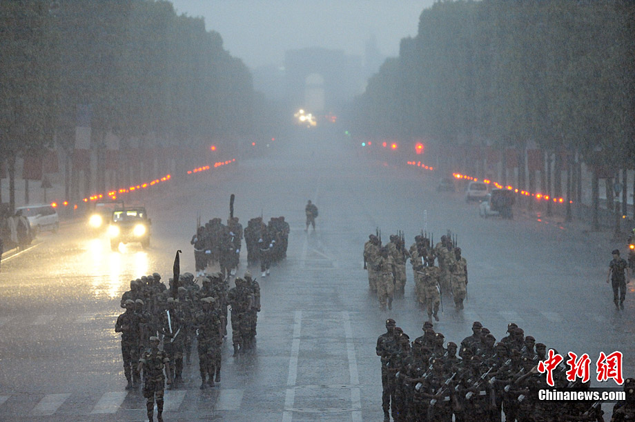 7月12日,法國巴黎的香榭舍大街上,來自13個非洲國家和法國軍隊的士兵冒雨進行了國慶日閱兵式彩排。7月14日是法國國慶日。1789年的這一天,巴黎人民攻占了象征封建統治的巴士底獄,推翻了君主政權。1880年,7月14日被正式確立為法國的國慶日,法國人每年都要隆重紀念這個象征自由和革命的日子。