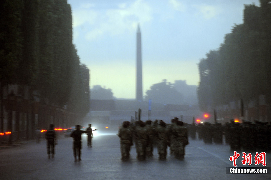 法國冒雨舉行閱兵式彩排