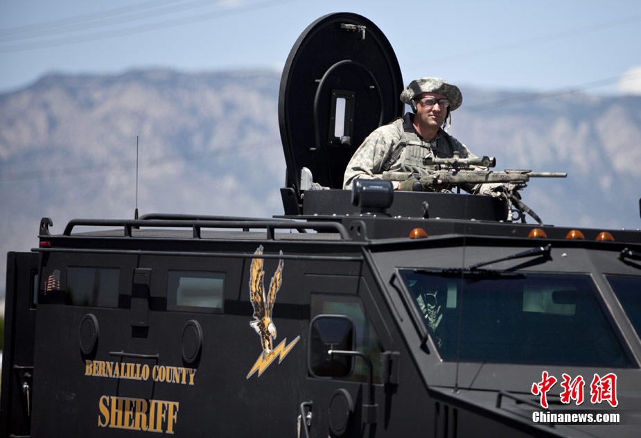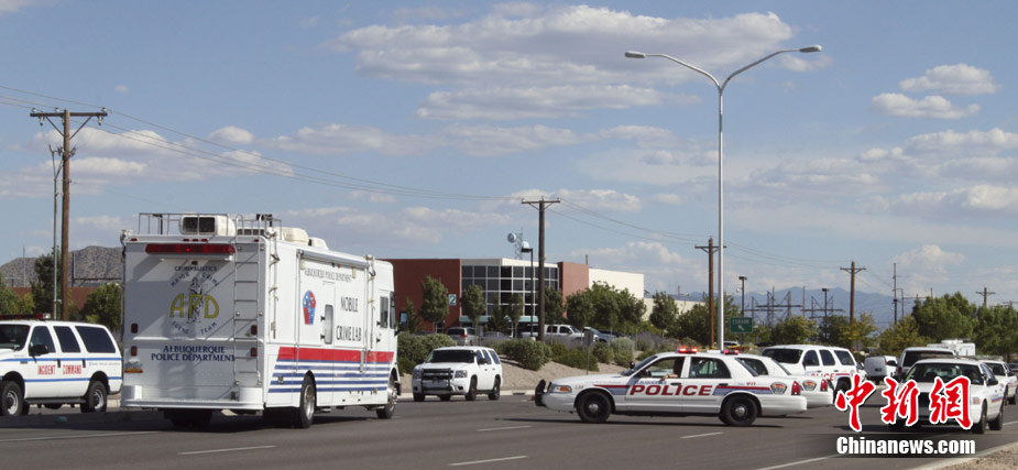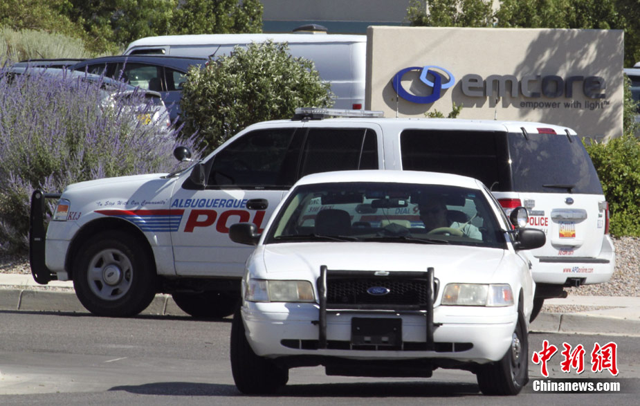 7月12日,美國新墨西哥州阿爾伯克基發生一起槍擊案,一名槍手在阿爾伯克基東南部的一家光導纖維廠辦公大樓會議室里開槍,打死2人,打傷4人,槍手隨后自殺身亡。警方認為,這可能是一起由家庭糾紛引起、發展到工作場所的槍擊事件。圖為警察在辦公大樓附近巡邏。
