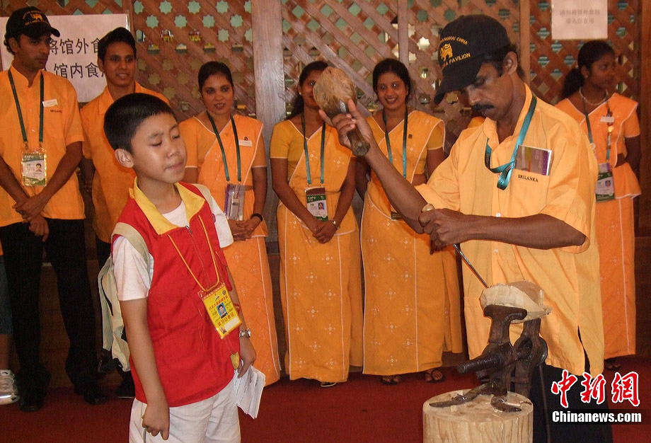 7月18日,上海世博會迎來了斯里蘭卡國家館日,該國總理薩納亞克·賈亞拉特納前來出席,一場多元文化的展示更是讓參觀者一窺這顆“印度洋明珠”的神秘。鄭瑩瑩 攝