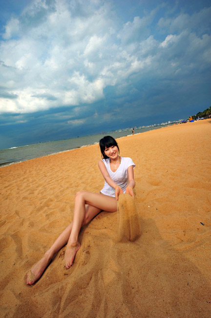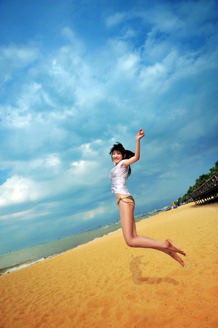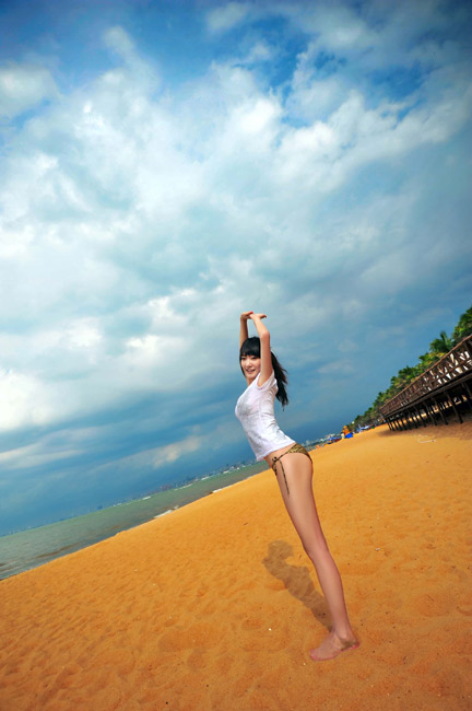 近日,清純美女排球寶貝孟瞳迪身穿火辣比基尼在沙灘上玩起了排球,一件白色襯衣加粉嫩金色的比基尼將孟瞳迪的傲人身材盡情展示。