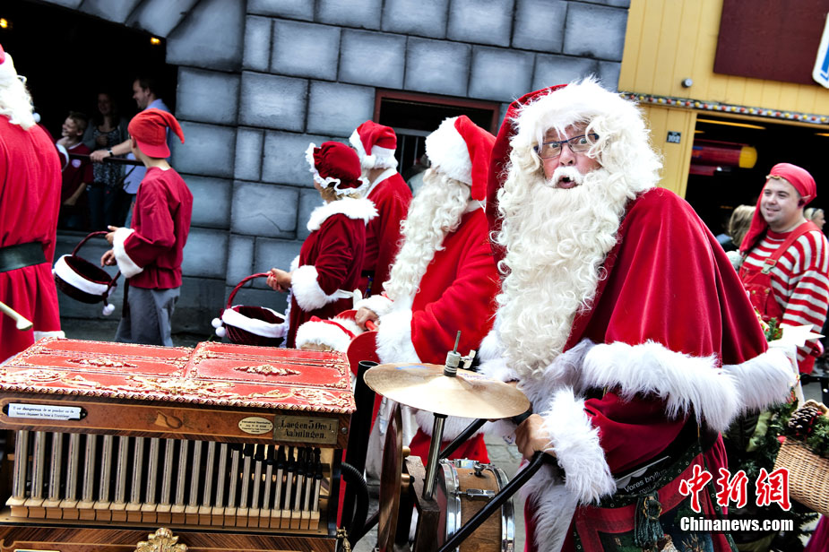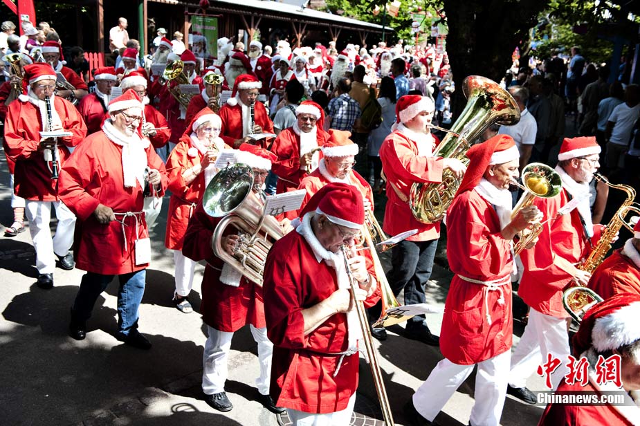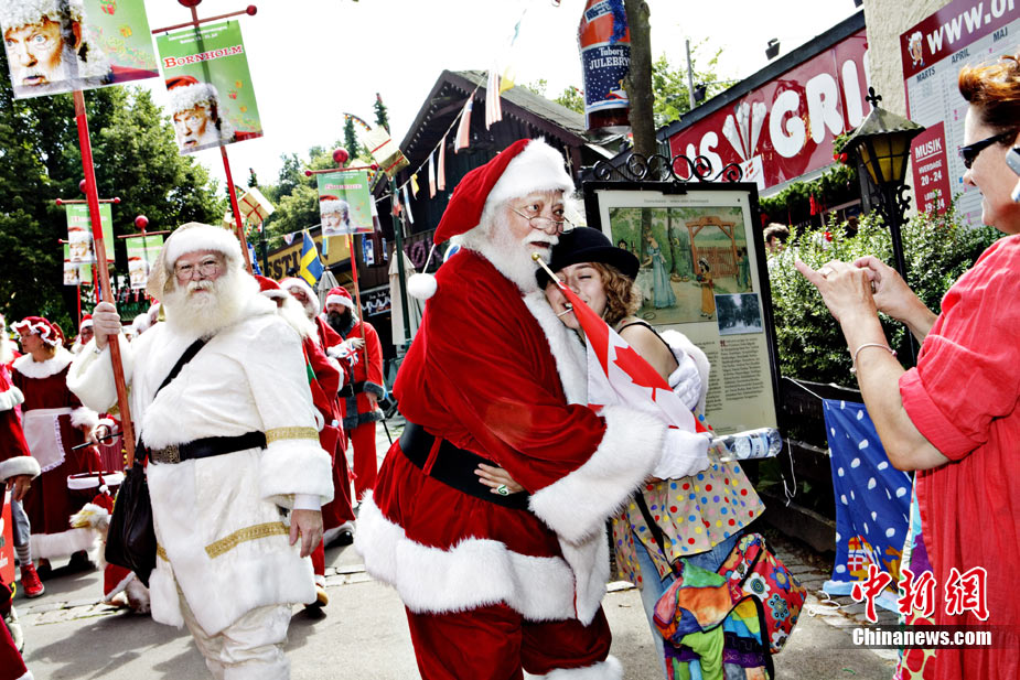 7月19日,丹麥首都哥本哈根,來自世界各地的圣誕老人舉行游行,慶祝一年一度的世界圣誕老人大會。當天,120多名來自世界各地的圣誕老人齊聚哥本哈根。