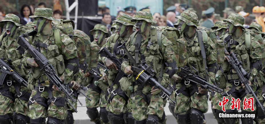 7月20日,在哥倫比亞首都波哥大舉行慶祝該國(guó)獨(dú)立200周年的閱兵活動(dòng)。1810年7月20日哥倫比亞宣布脫離西班牙的殖民統(tǒng)治獨(dú)立。