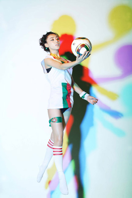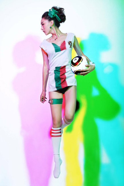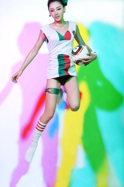 出生于1989年的金美辛是一位美麗的足球?qū)氊悺=眨鹈佬僚臄z一套性感照片懷念世界杯葡萄牙隊和C羅。