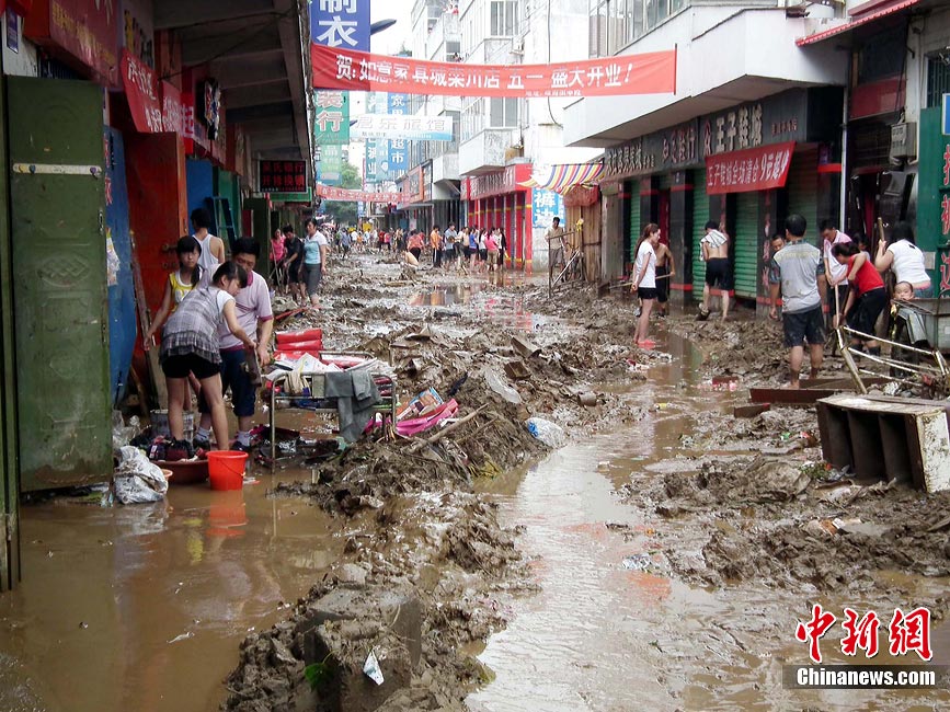 7月23日至24日,河南省欒川縣普降百年一遇特大暴雨,14個鄉鎮受災,10個鄉鎮通訊中斷,10個鄉鎮交通中斷,部分鄉鎮電力中斷,縣城大面積斷水。截至27日下午13時,該縣各鄉鎮的通信信號已全面恢復,但縣城供水仍困難,該縣27日派出了8臺送水車送水,預計27日晚可以向縣城中心區域2樓以下住戶供水。于乾坤 攝
