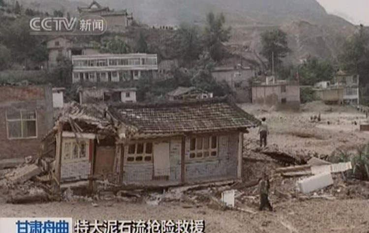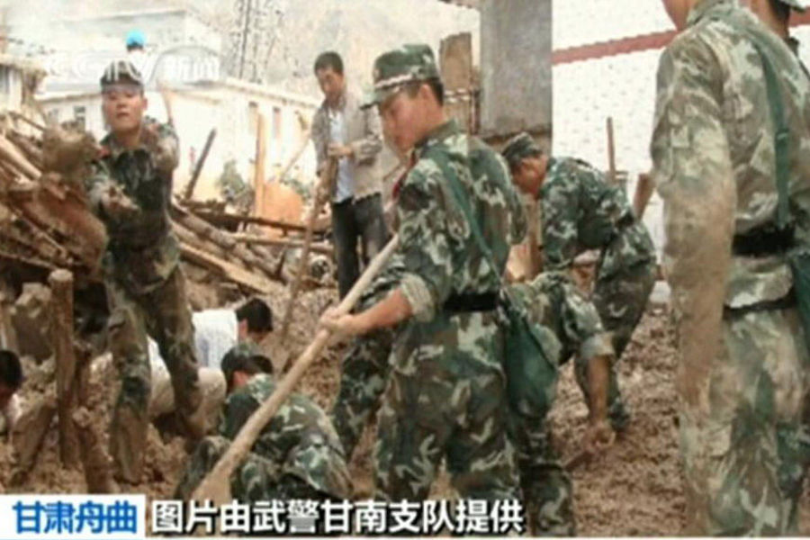 8月8日凌晨,溫家寶總理下午5點左右已抵達甘肅舟曲三眼村救災現場。 中新社發 康元彬 攝 圖片來源:cnsphoto