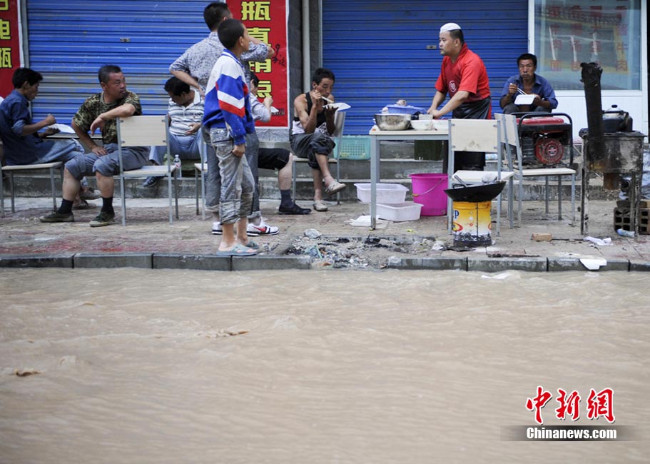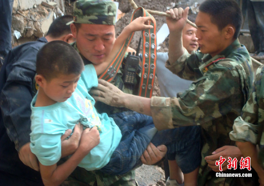8月9日,甘肅舟曲泥石流災區搜救進入第二天。圖為消防官兵正在搜尋失蹤人員。中新社發 劉忠俊 攝