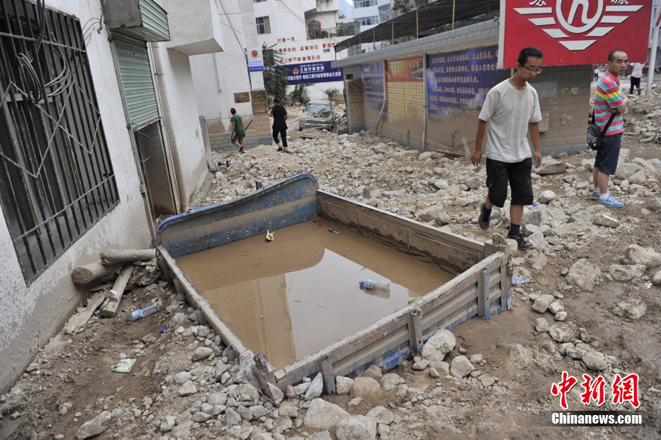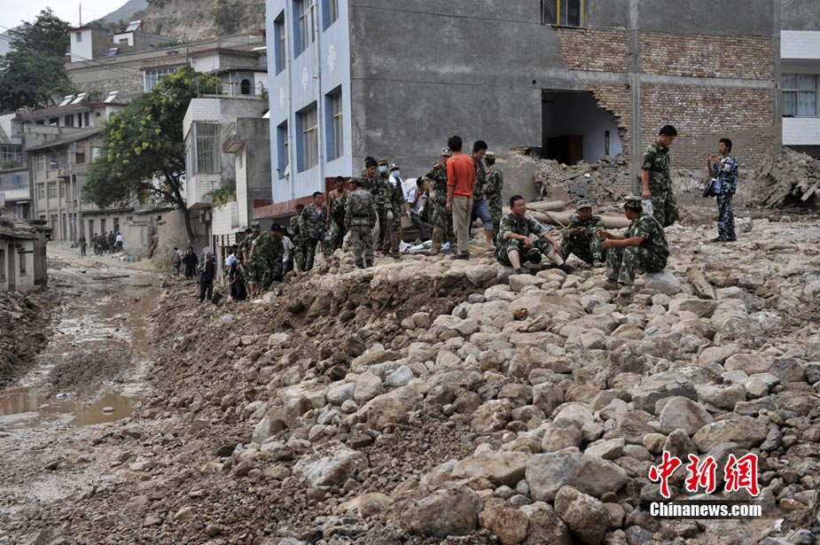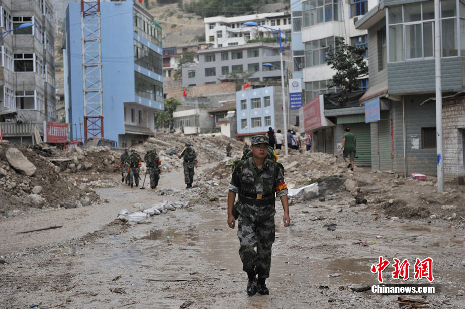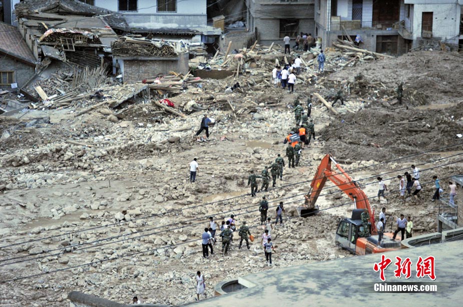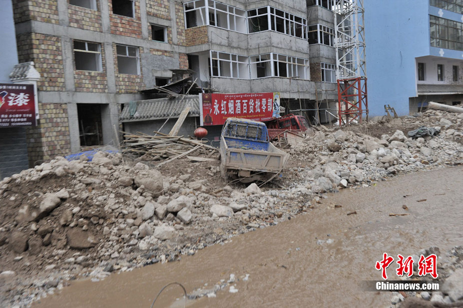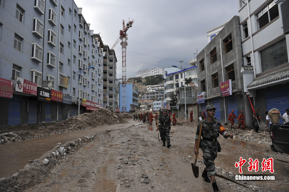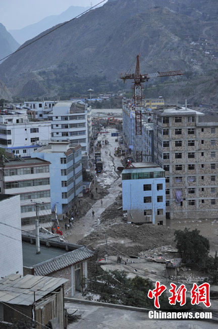 8月9日,甘肅省舟曲縣被泥石流沖毀的房屋和街道。8日凌晨,甘肅省舟曲縣因強降雨引發滑坡泥石流,造成重大人員傷亡,電力、交通、通訊中斷。中新網記者 金碩攝