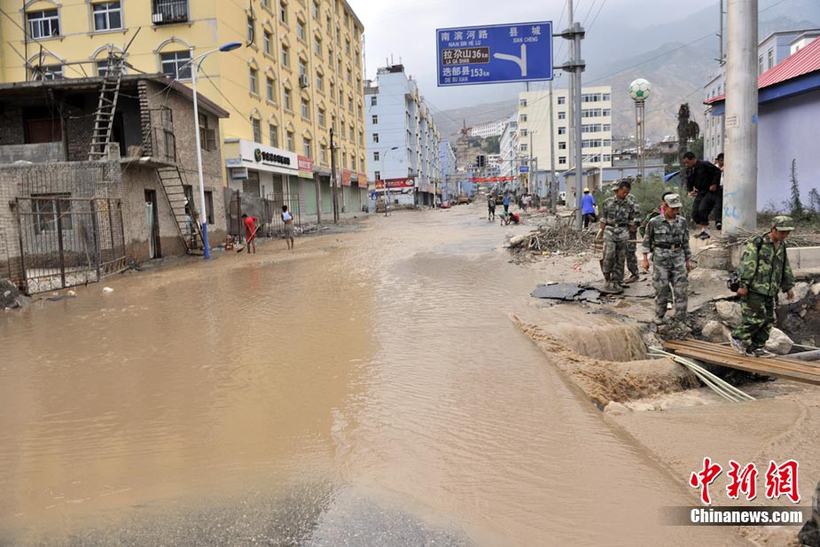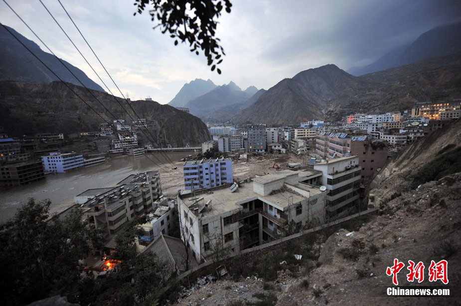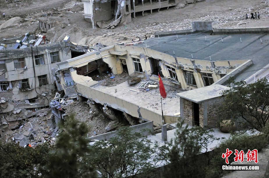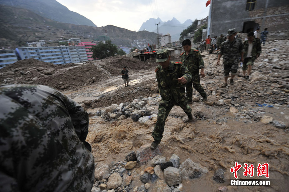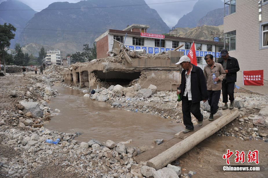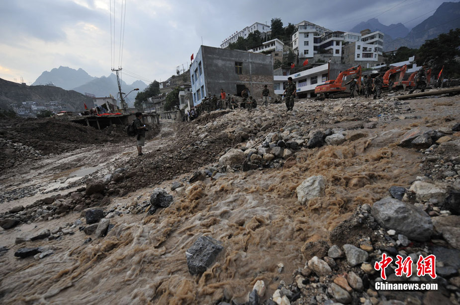 8月9日,甘肅省舟曲縣被泥石流沖毀的房屋和街道。8日凌晨,甘肅省舟曲縣因強降雨引發滑坡泥石流,造成重大人員傷亡,電力、交通、通訊中斷。中新網記者 金碩攝