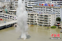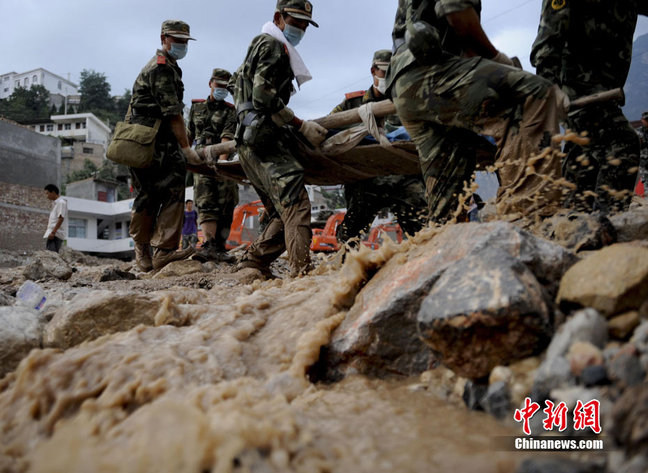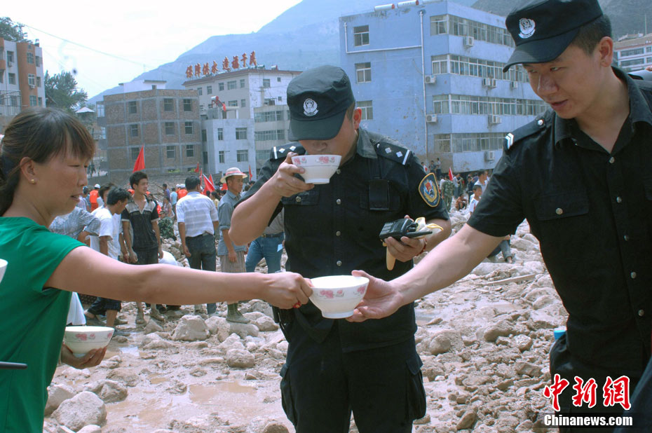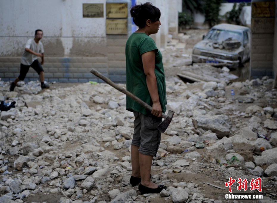 舟曲縣城內被泥石流沖毀的建筑。中新網記者 金碩 攝