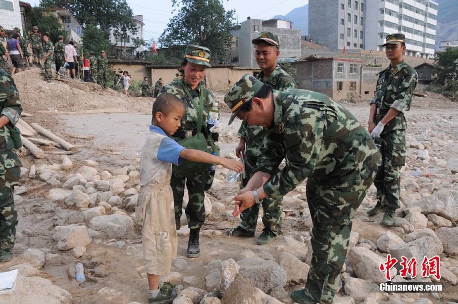 8月10日,蘭州軍區某集團軍“開山斧工兵團”兩次對舟曲災區堰塞湖實施爆破,雖然通過爆破,使河道基本疏通,但效果還不太明顯。11日,蘭州軍區工兵連將繼續爆破,使用炸藥重量也將提高。中新社發 劉忠俊 攝