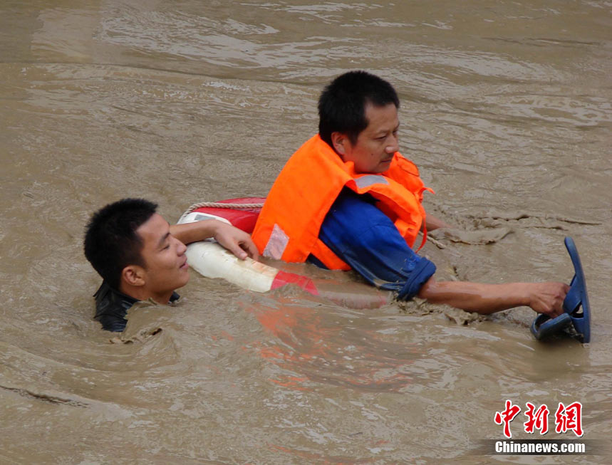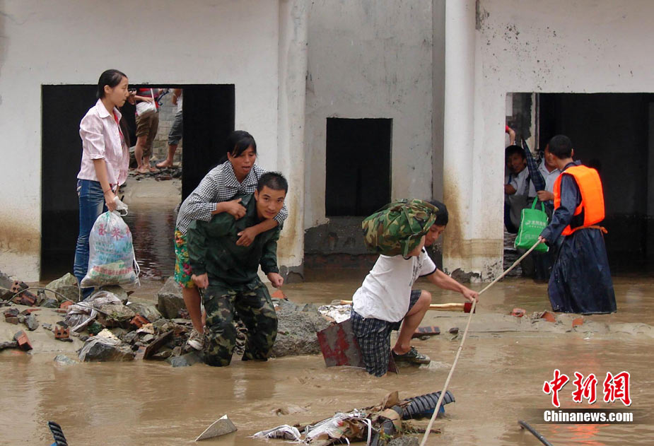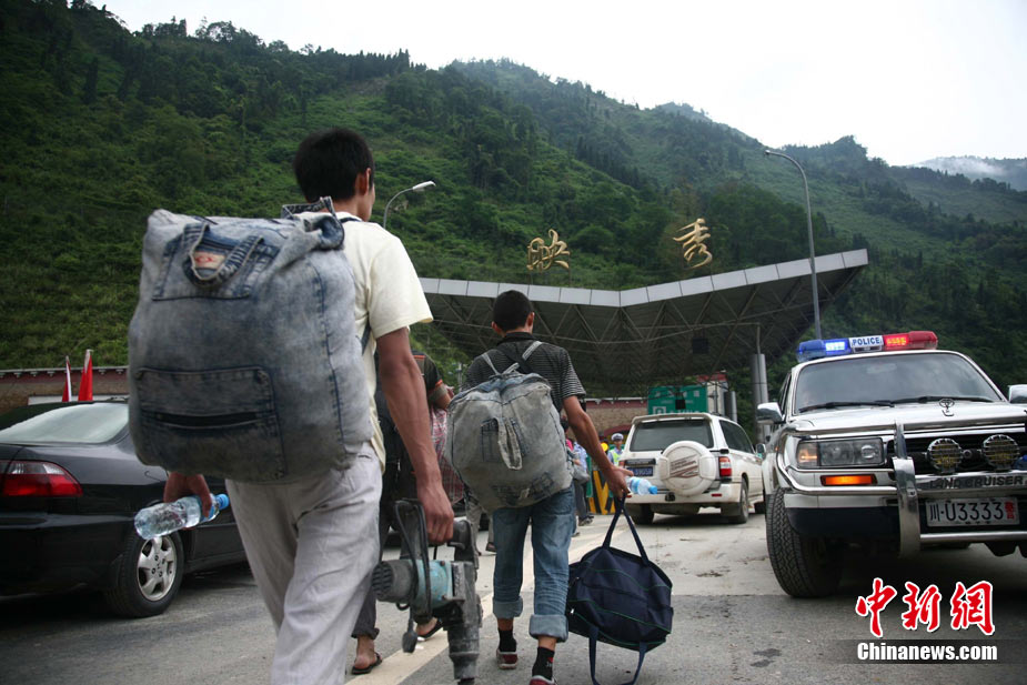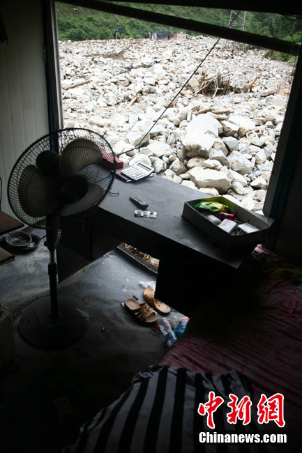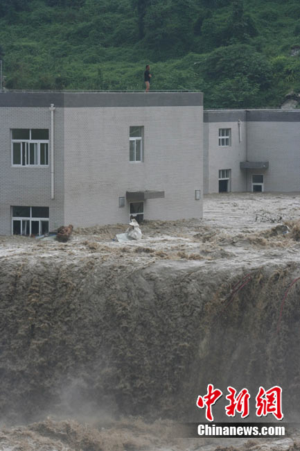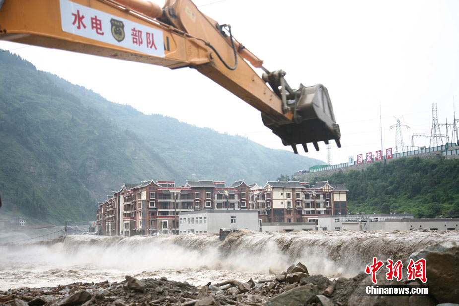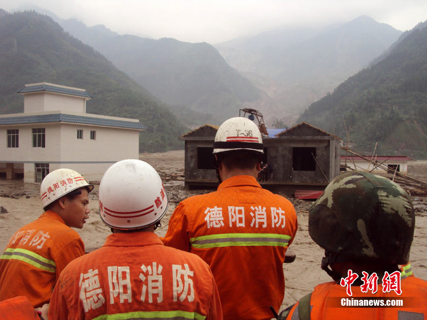 8月14日凌晨,連續(xù)強(qiáng)降雨引發(fā)汶川境內(nèi)映秀鎮(zhèn)、漩口鎮(zhèn)、銀杏鄉(xiāng)、三江鄉(xiāng)等鄉(xiāng)鎮(zhèn)發(fā)生多處泥石流災(zāi)害。其中銀杏鄉(xiāng)境內(nèi)泥石流塌方量高達(dá)6萬立方米,流經(jīng)該鄉(xiāng)的岷江也因泥石流阻斷,正在形成堰塞湖;映秀鎮(zhèn)板房醫(yī)院被泥石流沖毀。中新社發(fā) 薛升玉 攝