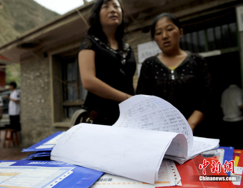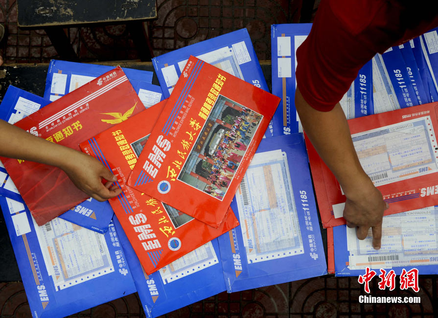 8月14日,甘肅舟曲災區的高考錄取通知書正在發放過程中,學生們接過火紅色的錄取通知書信封,眼里有藏不住的笑意。然而,有一些通知書卻永遠無法發出了。截至上午10點30分,舟曲一中收發室當天共發出7份錄取通知書,還有30多封正等待領取。中新社發 廖攀 攝