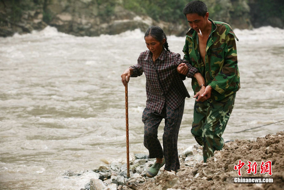 8月16日,滯留在汶川泥石流災(zāi)區(qū)的群眾紛紛徒步翻山越嶺撤離自己家園,趕往都江堰、成都等安全地帶。8月14日凌晨汶川境內(nèi)多處發(fā)生泥石流災(zāi)害,導(dǎo)致汶川境內(nèi)多條公路中斷、民房沖毀,地震災(zāi)區(qū)群眾新家園受到新的創(chuàng)傷,通過武警官兵對道路三天三夜的搶險(xiǎn),從汶川到映秀鎮(zhèn)路段危險(xiǎn)基本排除。 中新社發(fā) 張浪 攝