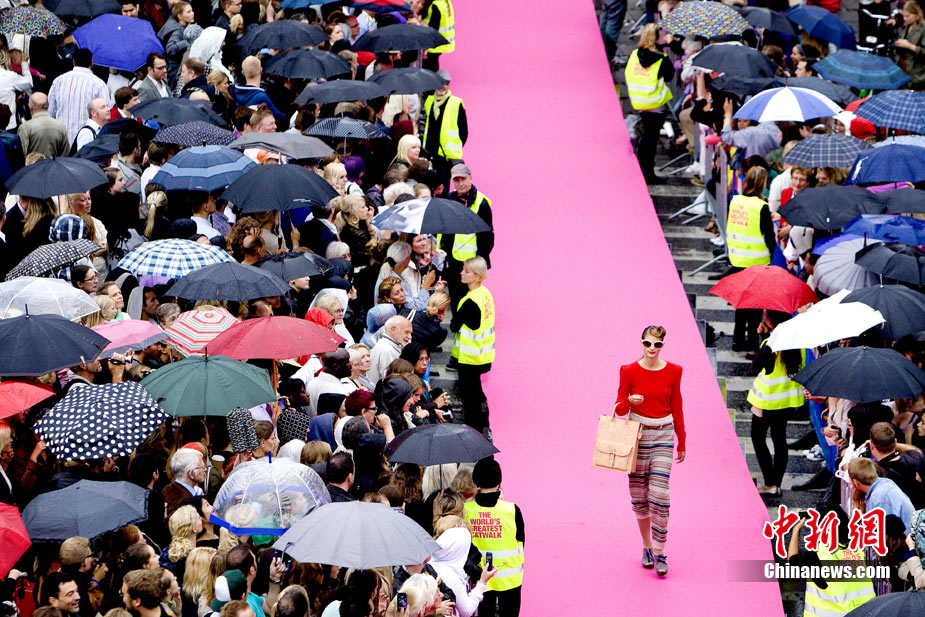 近日,為迎接哥本哈根時裝周,哥本哈根時裝協(xié)會專門在市中心建起了一條一英里長(1.61公里)的粉紅色T臺,成功打破“最長T臺”的世界紀(jì)錄。超過10萬名觀眾聚集在T臺旁欣賞時裝秀。