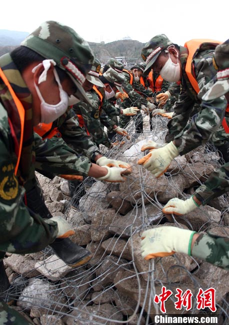 8月18日上午,由蘭州軍區某集團軍“開山斧工兵團”大型機械對舟曲特大山洪泥石流災害所致三眼峪重災區危樓進行拆除。中新社記者 陳文 攝