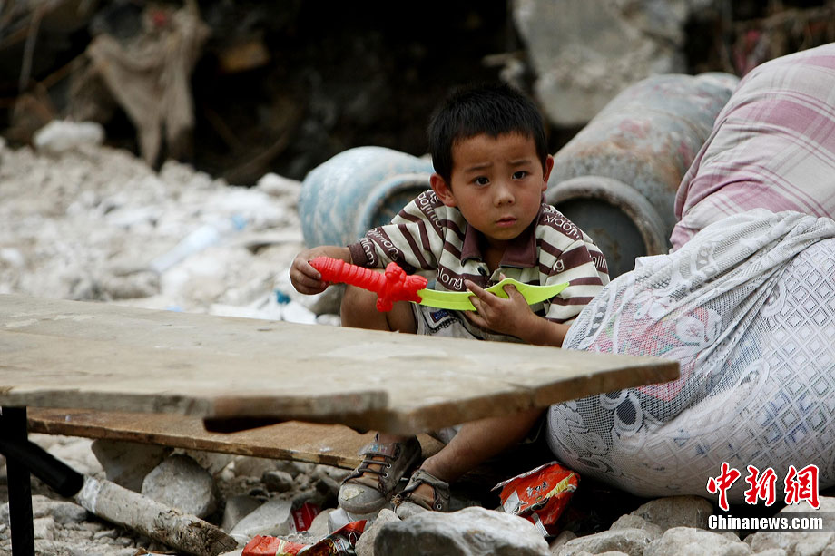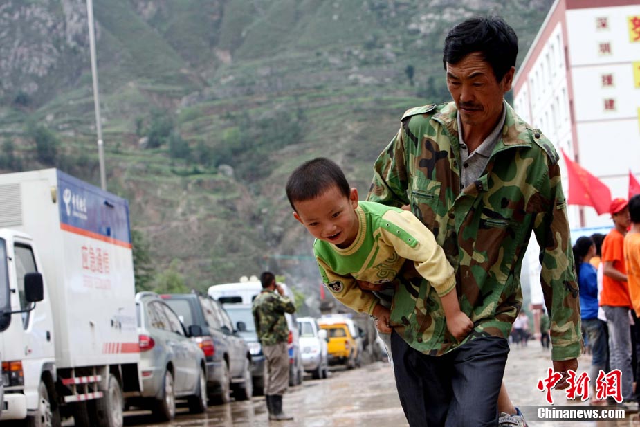 舟曲縣城因泥石流形成的白龍江堰塞湖,經過救災部隊官兵連續多日疏通,水位已經明顯下降,但后續的清淤任務仍很艱巨。圖為舟曲一受災小區內淹沒的小轎車浮出水面。中新社記者 陳文 攝