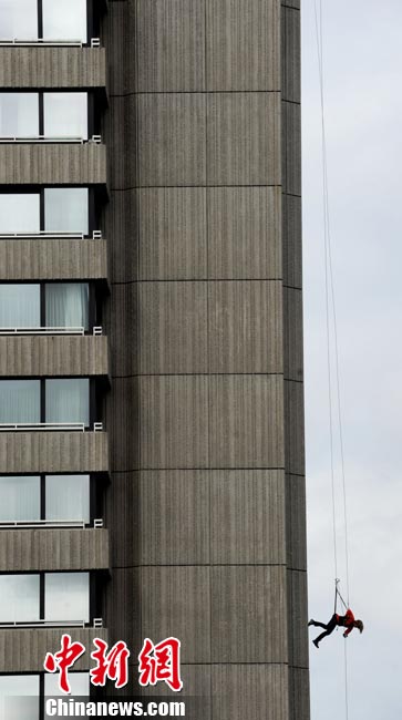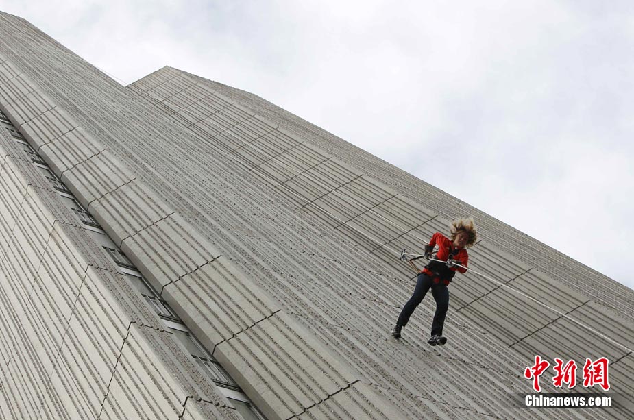 8月19日,德國視障滑雪運動員、殘奧會越野滑雪比賽金牌得主瓦瑞那·本特勒在德國南部城市慕尼黑參加“高樓漫步”活動。