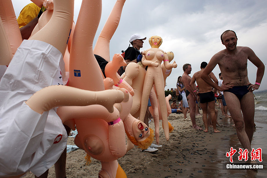 當地時間8月22日,一場別開聲面的搞笑游泳比賽在俄羅斯西伯利亞城市新西伯利亞舉行,數十名俄羅斯壯漢懷抱“充氣娃娃”躍入河中進行游泳比賽。不過,從比賽實況來看,很顯然這些參賽者并沒有把充氣娃娃當“伴侶”來對待,多半都當成游泳圈,使得氣氛既搞笑卻又帶點詭異。