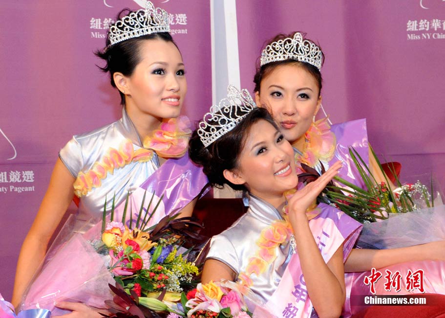 2010年度紐約華裔小姐競選,經過初選、培訓、才藝比賽等活動,于當地時間8月22日凌晨進行決賽,從入圍的13位佳麗中評出前三名和最佳才藝小姐、最上鏡小姐、最佳體態獎、最佳服裝獎、友誼小姐等獎項。最后,出生于吉林的12號佳麗張圣女當選冠軍。圖為眾佳麗祝賀張圣女當選冠軍。 中新社發 龔文謨 攝