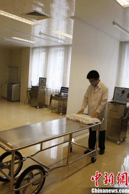 近期,北京團市委正在開展“探訪青年勞動者”活動。二十八歲的八寶山殯儀館整容師張洋便是其中之一。他自二〇〇五年進入八寶山殯儀館工作以來,勤學苦練,刻苦鉆研,勇于創(chuàng)新,共為三千余位逝者提供了高質量的整容服務,圓滿完成了二零一零年八名駐海地維和人員不幸遇難后遺體整容工作等二十余次重大任務。在剛剛結束的全國民政行業(yè)職業(yè)技能競賽中奪得大賽一等獎第一名。中新社記者 任海霞 攝
