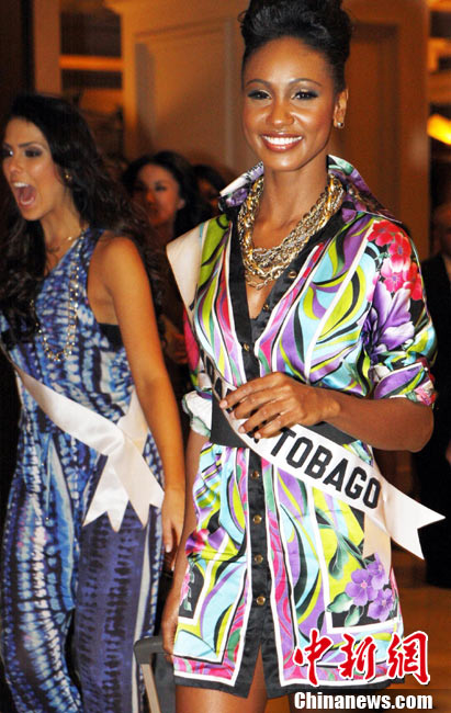 當地時間8月22日 ,正在美國拉斯維加斯參加第59屆“環球小姐”(Miss Universe)總決賽的各國佳麗進入最后彩排,在緊張的訓練排練之余,佳麗們利用15分鐘的就餐時間談笑風聲。圖為環球中國小姐唐雯拉斯維加斯備戰決賽。中新社記者 錢興強 攝