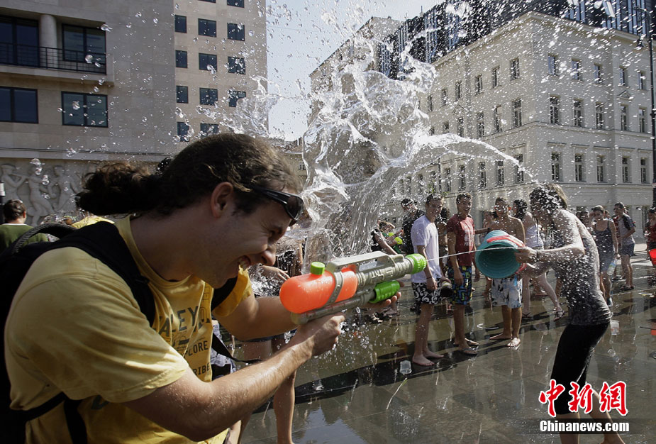 近日,在匈牙利首都布達佩斯的廣場上舉行了第三屆“水槍大戰(zhàn)”,民眾紛紛拿起“武器”,在炎炎夏日里展開了一場別開生面的比拼。