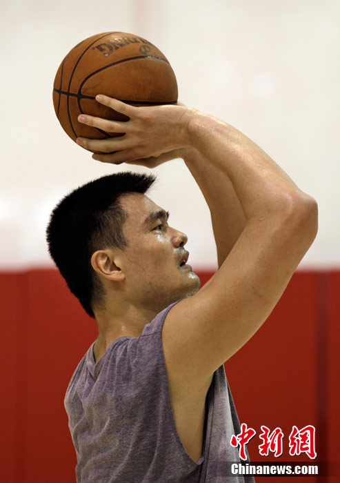 姚明主場公開訓練 隊醫宣布其腳傷已痊愈