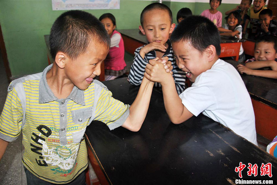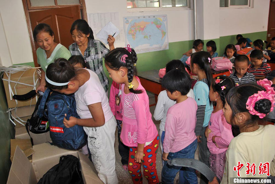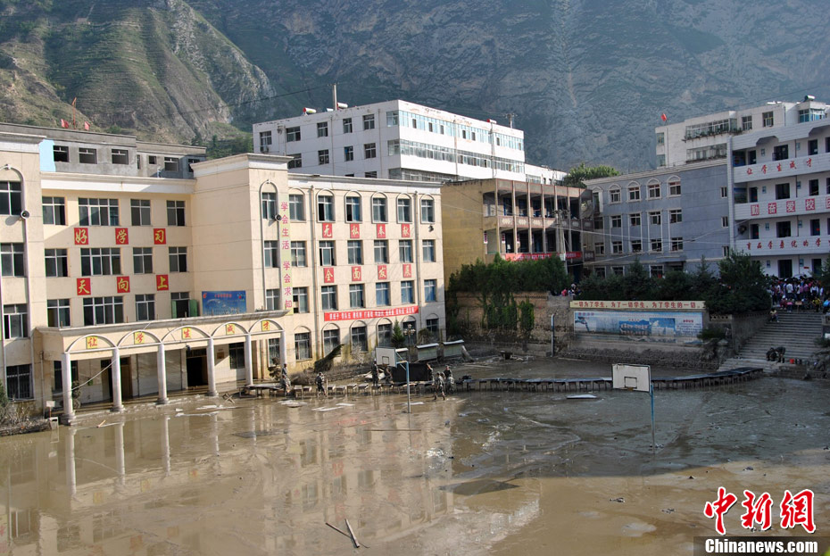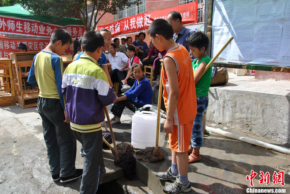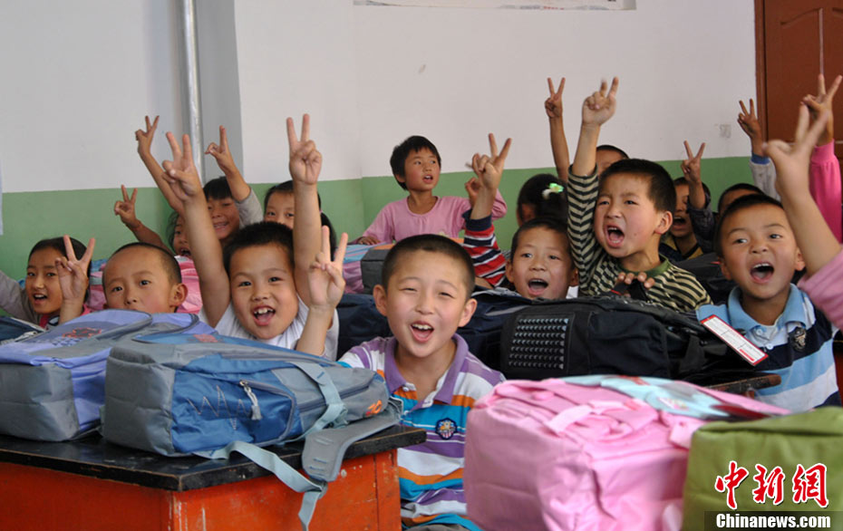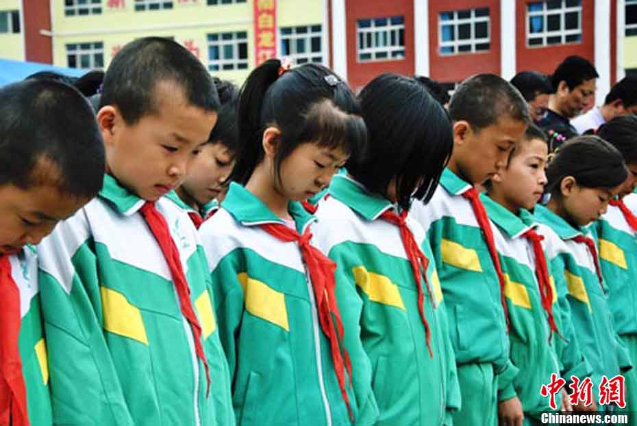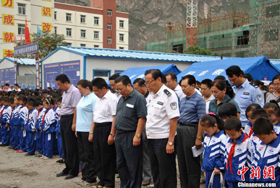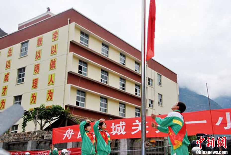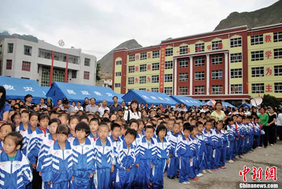 8月25日,舟曲小學生迎來新學期的第一天。圖為當日上午城關一小舉行升國旗儀式。馬曉俊 攝