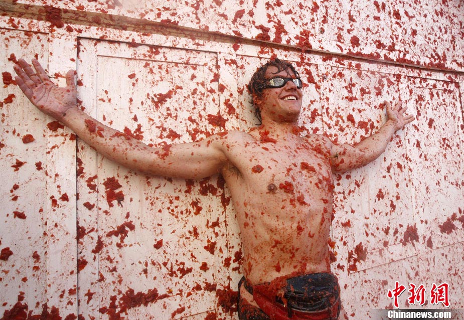 8月25日,西班牙東南部小鎮(zhèn)Bunol迎來傳統(tǒng)的西紅柿狂歡節(jié)。超過4.5萬人參加了此次活動,預(yù)計消耗了超過100噸西紅柿。這也是世界上最大規(guī)模的“番茄大戰(zhàn)”。
