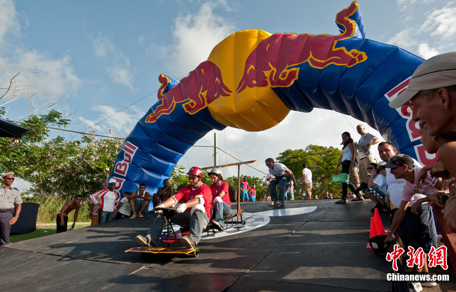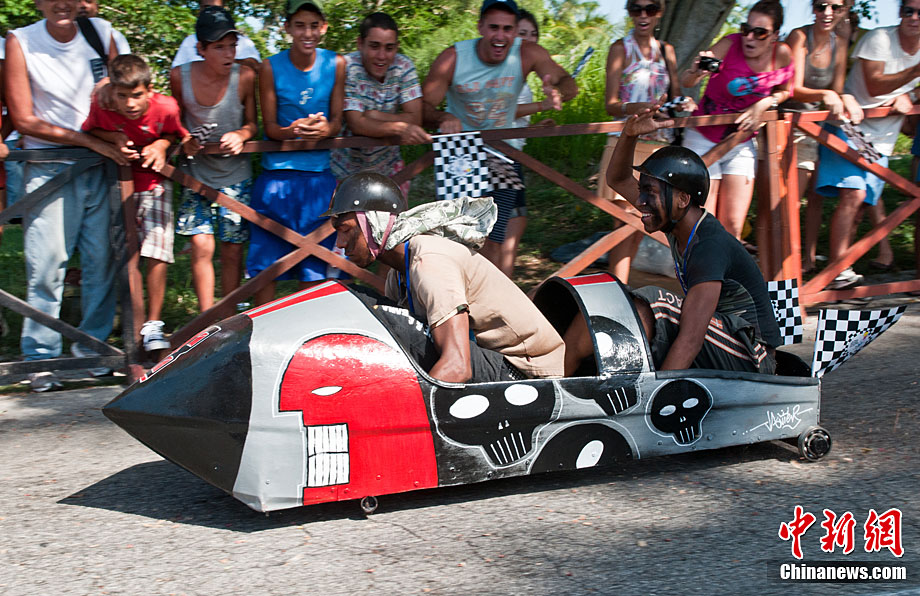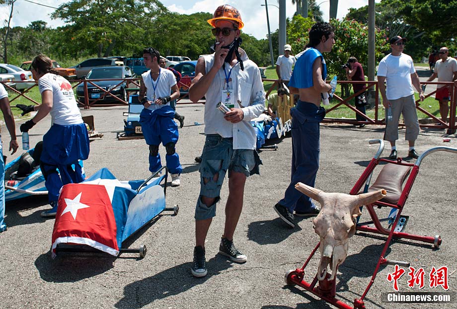 當地時間8月27日,古巴首都哈瓦那舉行了首屆無動力自制小車大賽。82名參賽選手駕駛著41輛自制小車參賽。