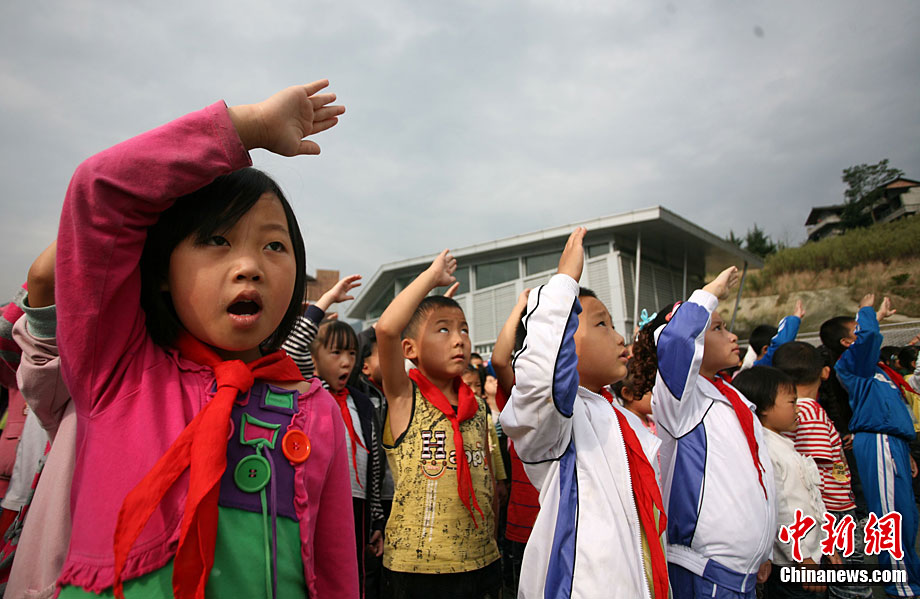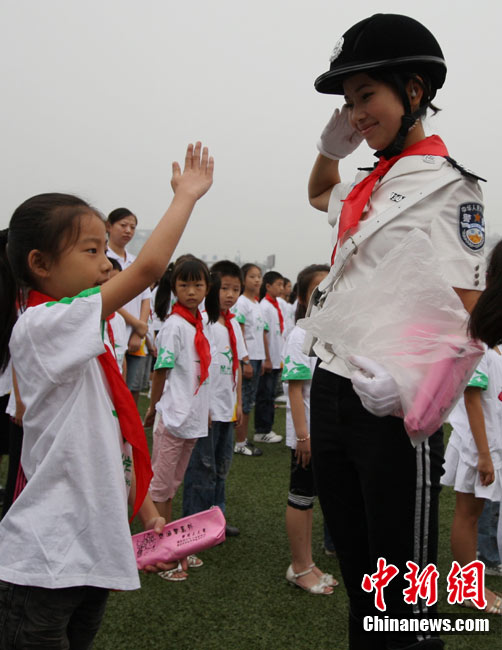 快樂的暑假結束了,全國中小學生陸續開學上課,迎來了新學期。圖為8月30日,山東博山考院小學門前,一年級的子琰小朋友在學校警戒線外與家長再見。中新社發 劉震 攝