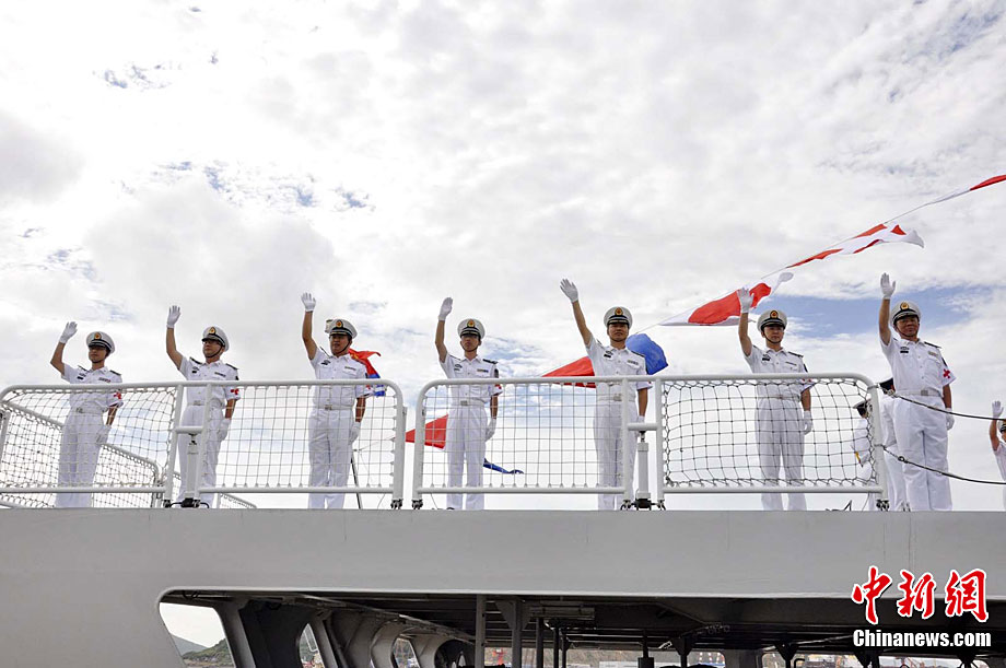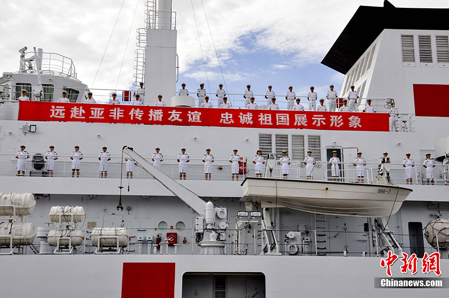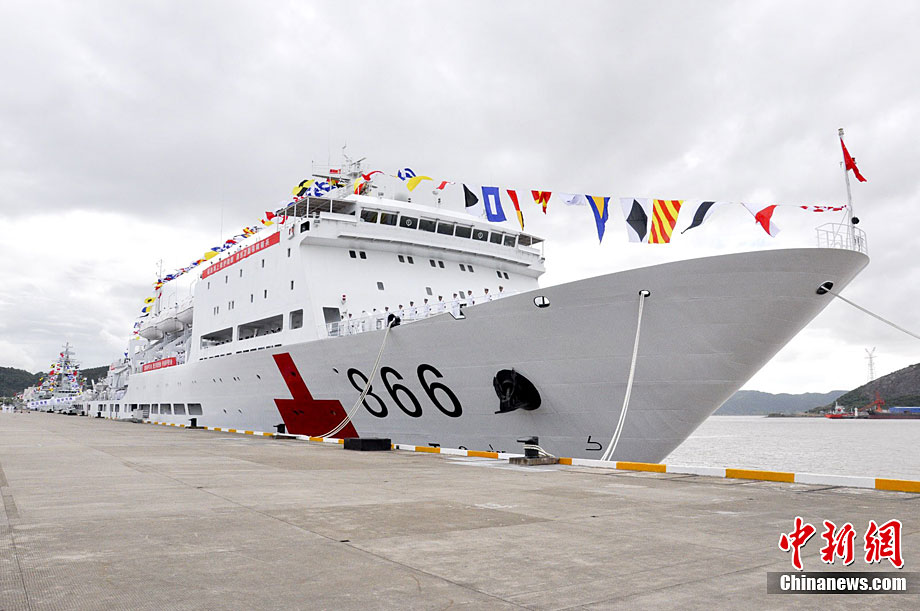 8月31日,經(jīng)中央軍委批準(zhǔn),由中國自行研制的世界首艘萬噸級“和平方舟”號醫(yī)院船從舟山某軍港啟航,前往亞丁灣海域及吉布提、肯尼亞、坦桑尼亞、塞舌爾、孟加拉五國執(zhí)行“和諧使命——2010”任務(wù)。這是中國“和平方舟”號醫(yī)院船首次赴國外執(zhí)行巡診及醫(yī)療服務(wù)任務(wù)。圖片來源:cnsphoto 胡善敏 攝