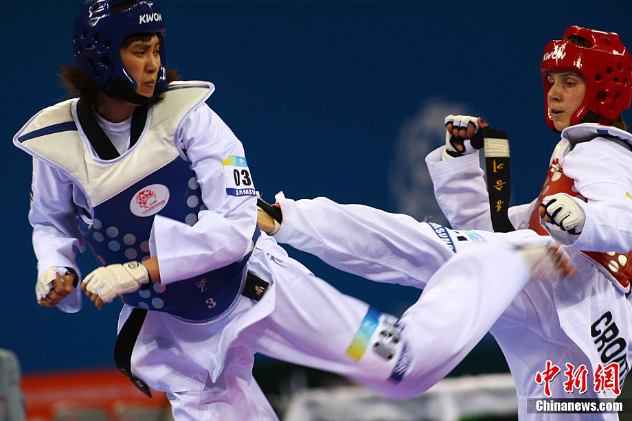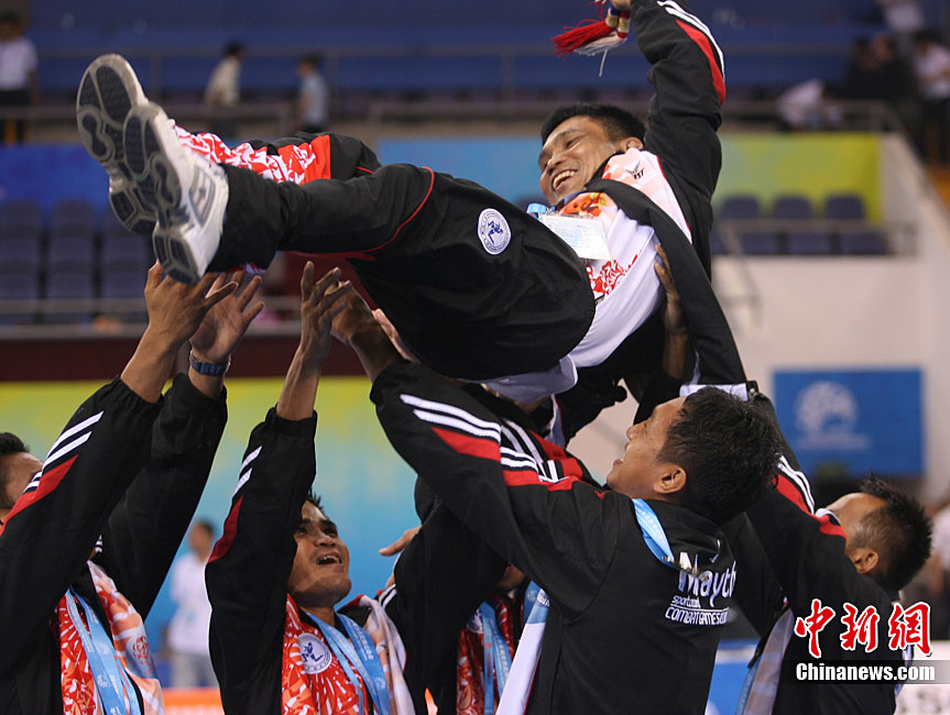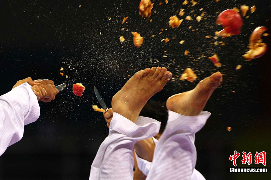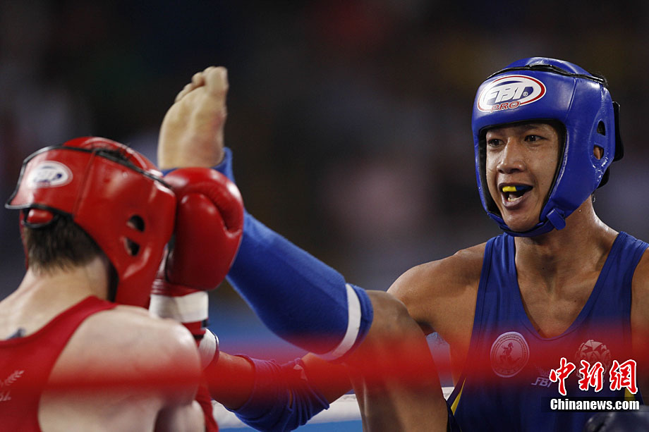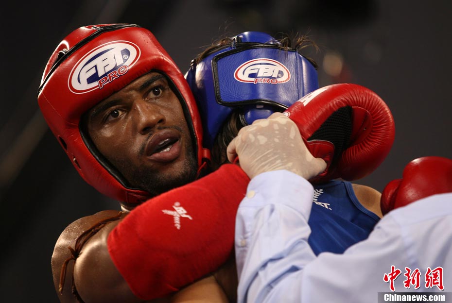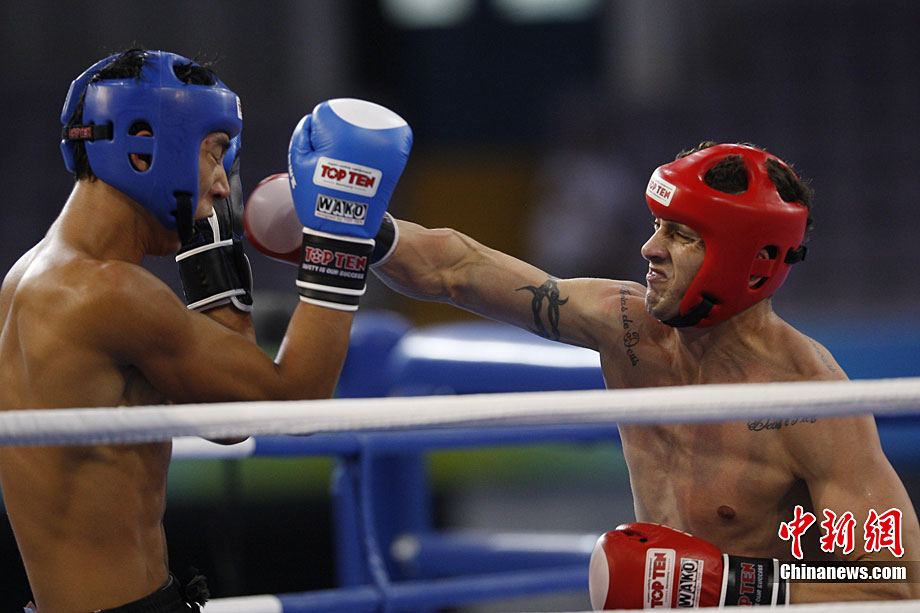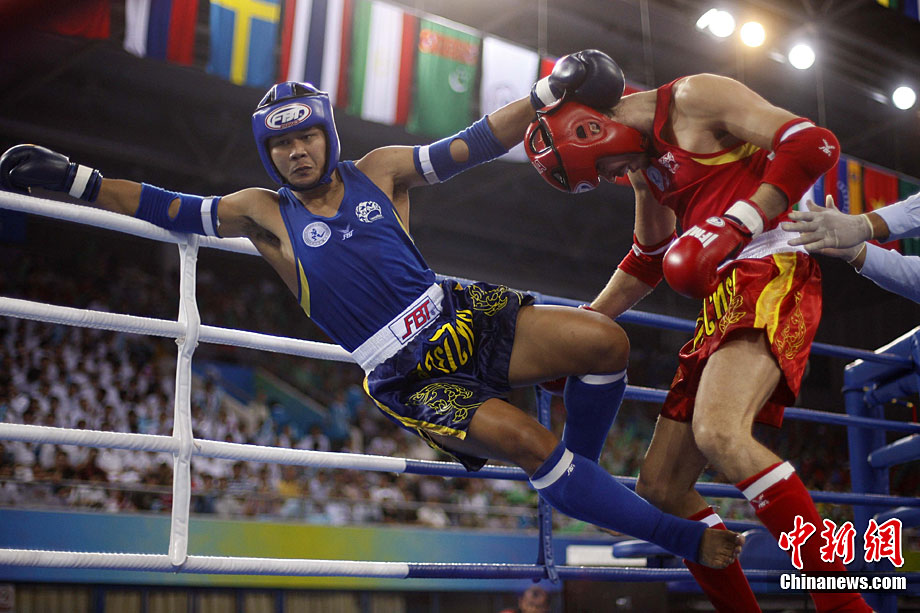 9月3日,2010年北京首屆世界武搏運動會劍道比賽在北京科技大學體育館開賽,當天舉行男、女個人賽預賽和決賽及女子特殊邀請賽預賽和決賽。圖為在男子個人邀請賽中,日本選手昭司寺本(Shoji TERAMOTO)(右)和巴西選手奧納卡(Ernesto Eisaku ONAKA)在比賽中。中新社記者 盛佳鵬 攝