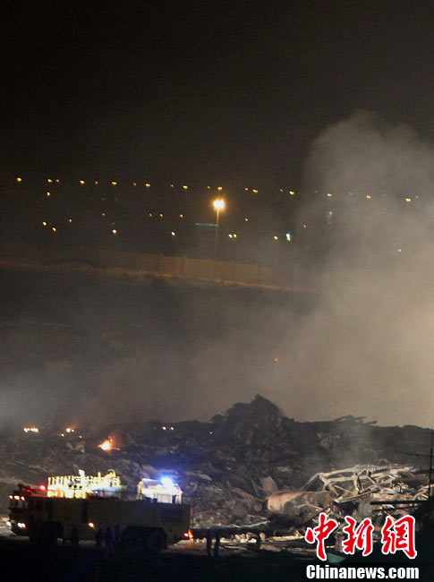 阿拉伯聯合酋長國民航總局3日發表聲明說,美國聯合包裹服務公司(UPS)一架波音747-400貨機當天晚上在迪拜墜毀,機上兩名飛行員喪生。圖為墜機現場。