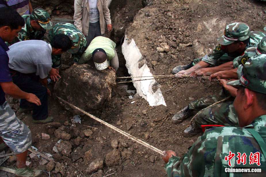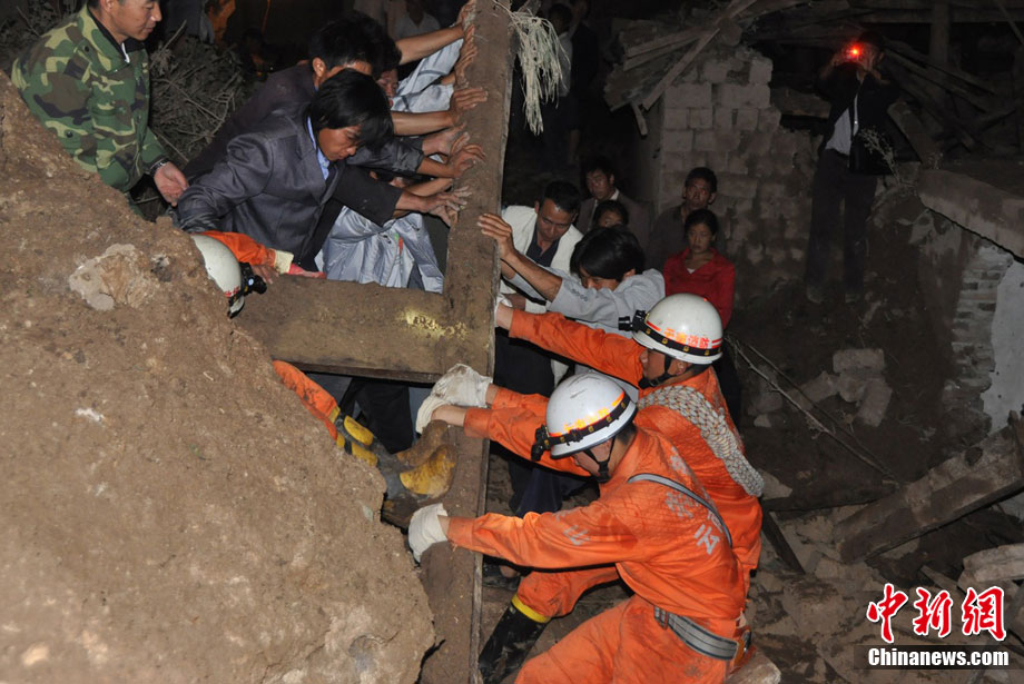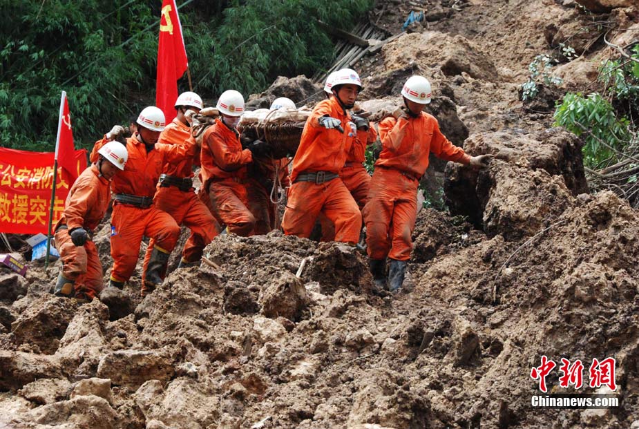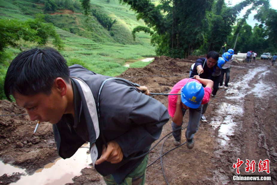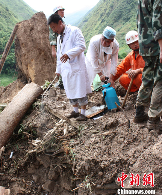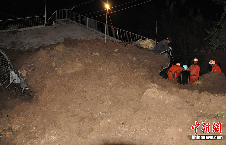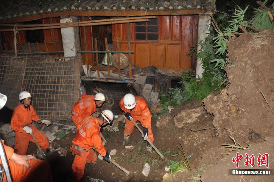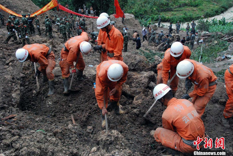 9月1日發生在云南保山隆陽區瓦馬村的特大山體滑坡災害造成該村損毀嚴重,相關專家鑒定,該區存在重大安全隱患,不適宜再居住。相關專家組日前趕赴災區,為受災群眾進行災后重建選址工作。圖為地質觀測點的武警戰士正在監測救援現場地質情況,以防止次生災害的發生。中新社發 任東 攝