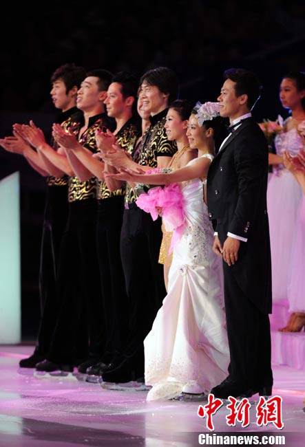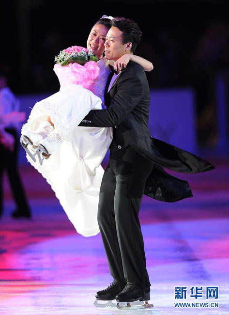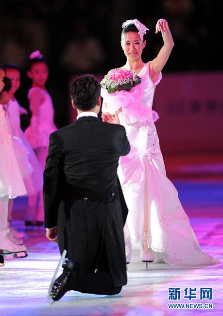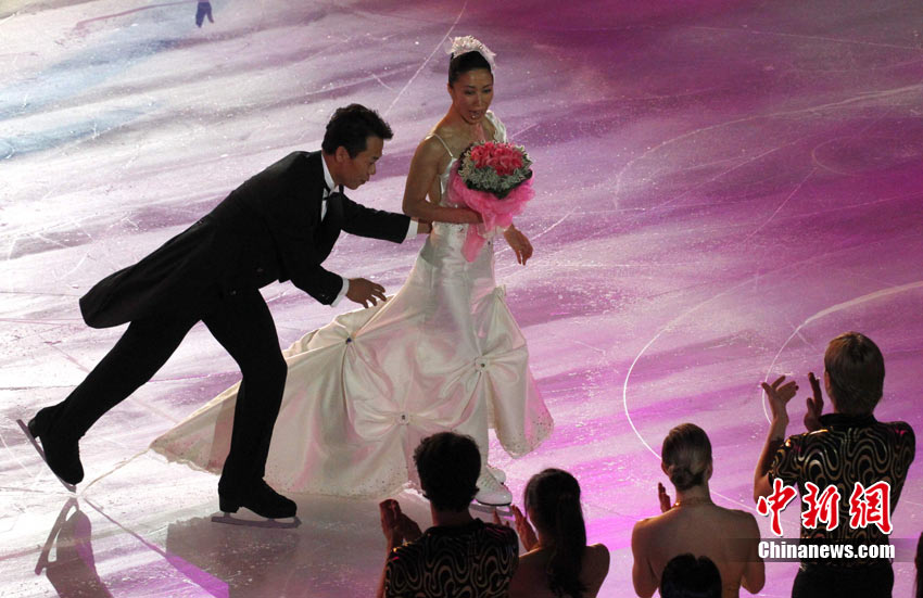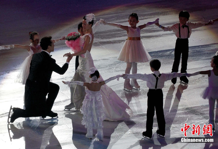 9月4日,申雪/趙宏博在首都體育館舉辦冰上婚典,并邀請普魯申科、亞古丁、約翰尼·威爾、淺田真央、羅切特等世界花滑巨星,聯(lián)袂世界著名編舞大師瑞內(nèi)·羅卡、歌星張靚穎、小提琴家呂思清等,為中國觀眾奉獻(xiàn)上一場賞心悅目、浪漫唯美的視聽盛宴。