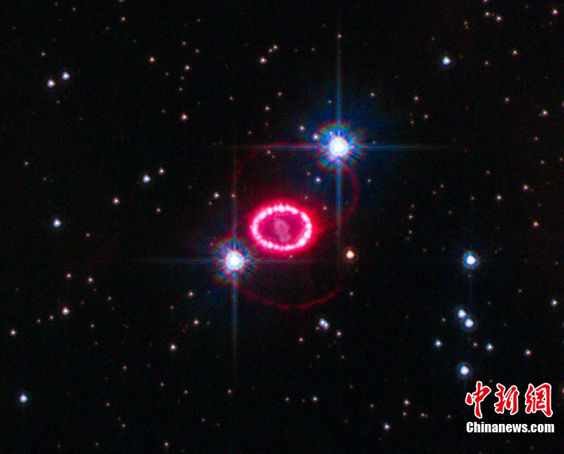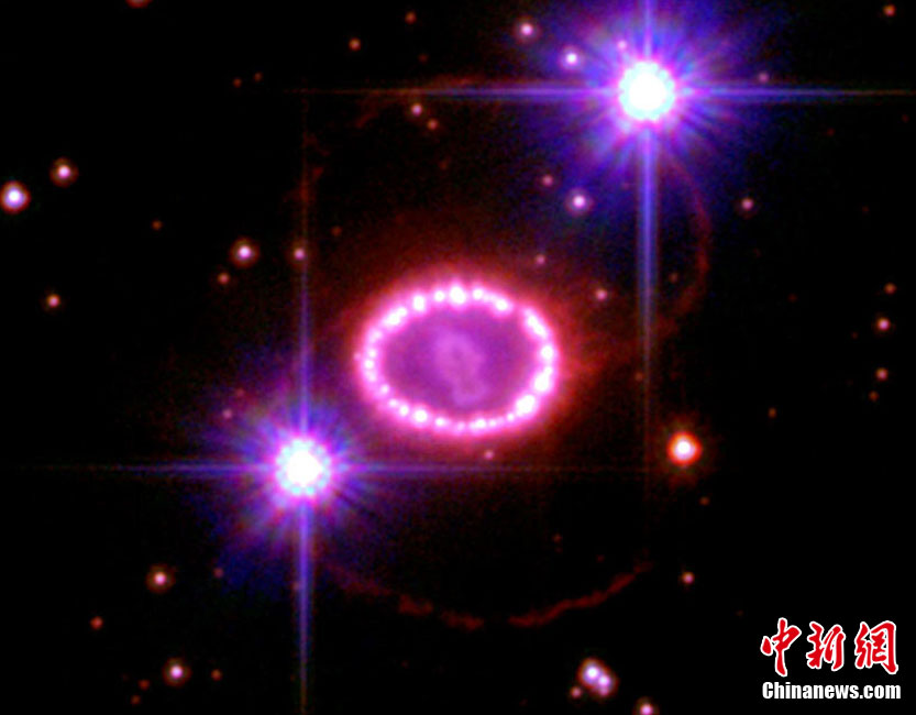 美國宇航局近日拍到一顆名為1987A的超新星爆發(fā)時形成的美麗“星膽”,而這場絢麗的爆發(fā)距離地球約16.3萬光年。“星膽”中圍繞著超新星爆發(fā)后留下的30到40個閃亮的殘余物,形成一個直徑約9.6萬億公里的圓環(huán),酷似由一顆顆璀璨的珍珠串成的項(xiàng)鏈。