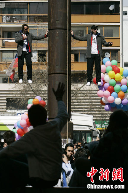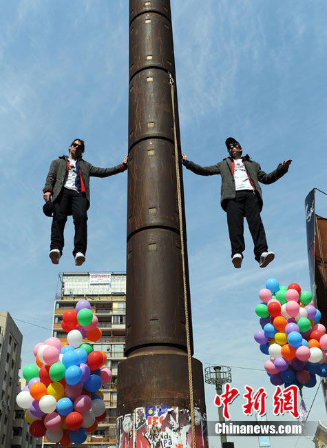 9月9日,智利著名的“魔術二人組”魔術師Jean Paul Olaverry和Nicolas Luisetti,在首都圣地亞哥街頭進行空中漂浮魔術。他們將在空中漂浮200分鐘以此來慶祝智利獨立200周年。
