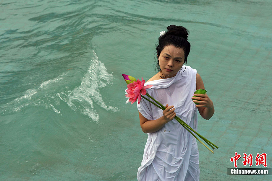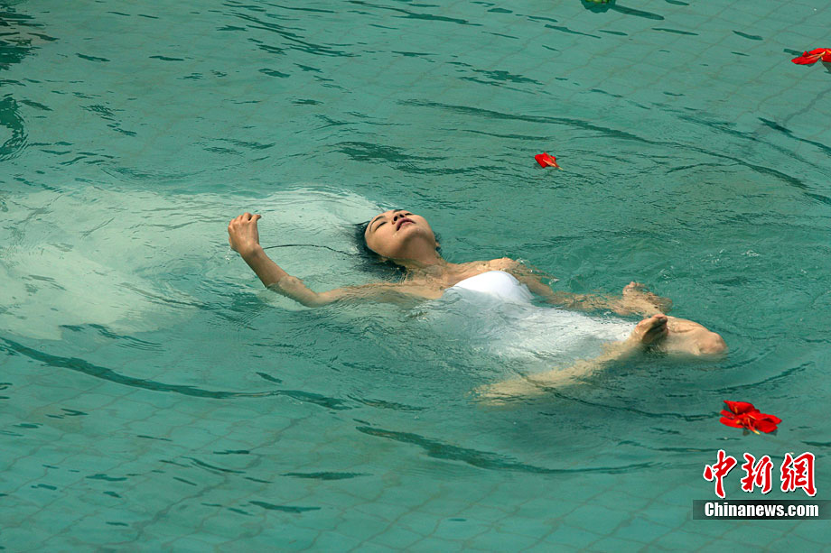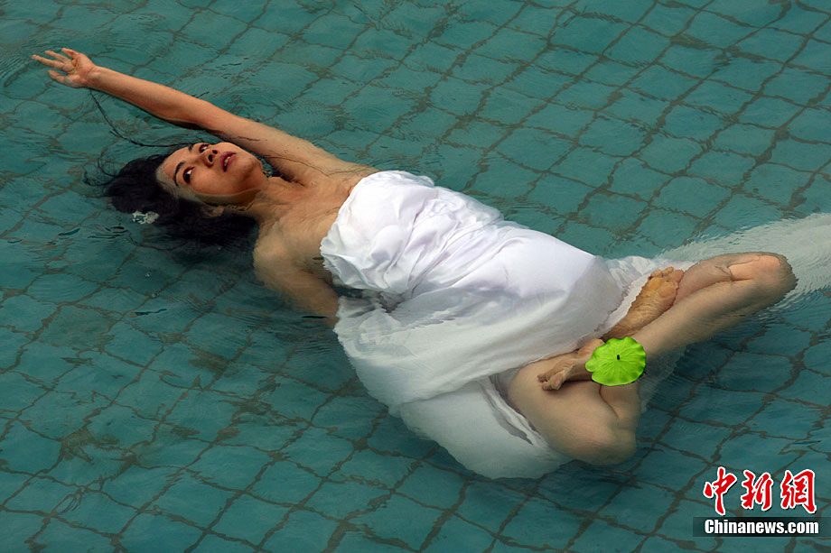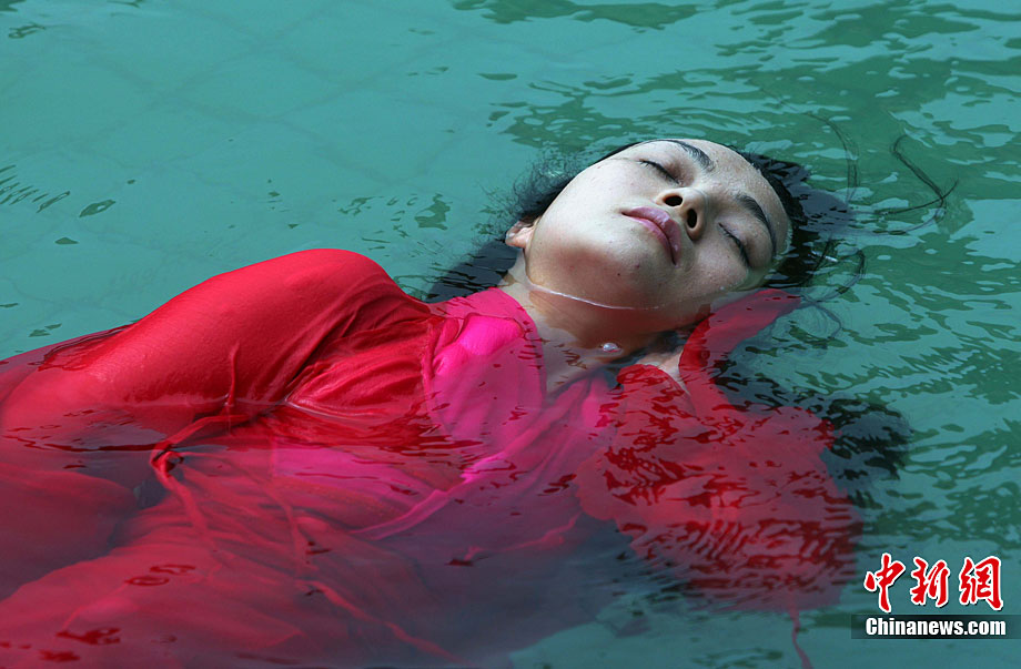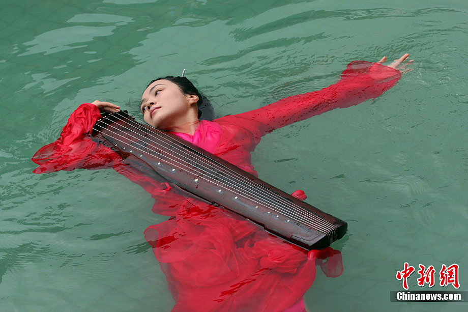 9月11日,漂浮于水上時而禪坐、時而圍繞水中漂浮的古琴緩緩起舞,伴著古琴樂,池水不時變換出各種造型的“水墨畫”,一種前沿新藝術(shù)形式在湖北咸寧太乙洞溫泉上演。原創(chuàng)及表演者彭子軒,提出藝術(shù)養(yǎng)生的理念,并獨創(chuàng)以子軒內(nèi)練為基礎的藝術(shù)漂。ò囆g(shù)漂浮舞蹈及藝術(shù)漂浮瑜伽),被譽為中國古典花樣游泳。毛建軍 攝