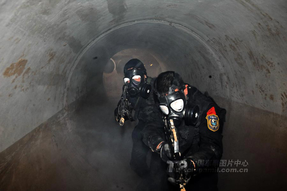 在有毒的地下管道中進行搜索解救人質。馮凱旋 攝