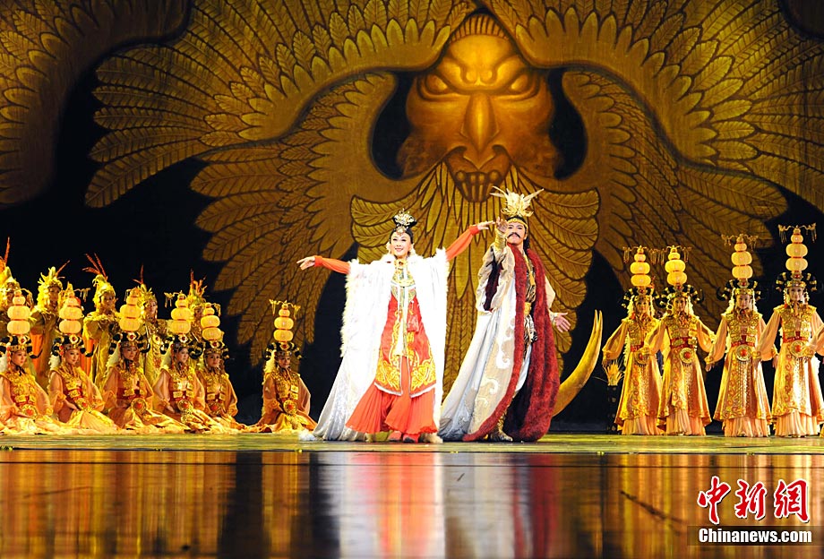 9月16日晚,2010華僑華人創業發展洽談會在武漢琴臺大劇院舉辦專場文藝演出,由湖北省歌劇舞劇院演出大型原創民族舞劇《王昭君》,其演員們的精湛演出博得與會代表們的熱烈掌聲。中新社發 張勤 攝